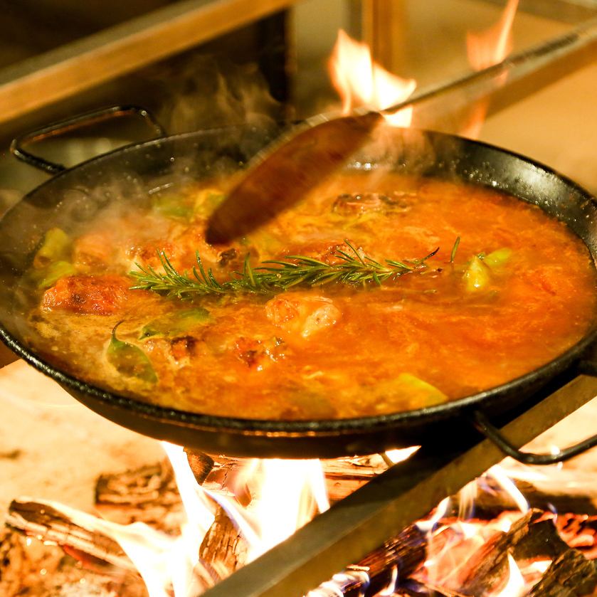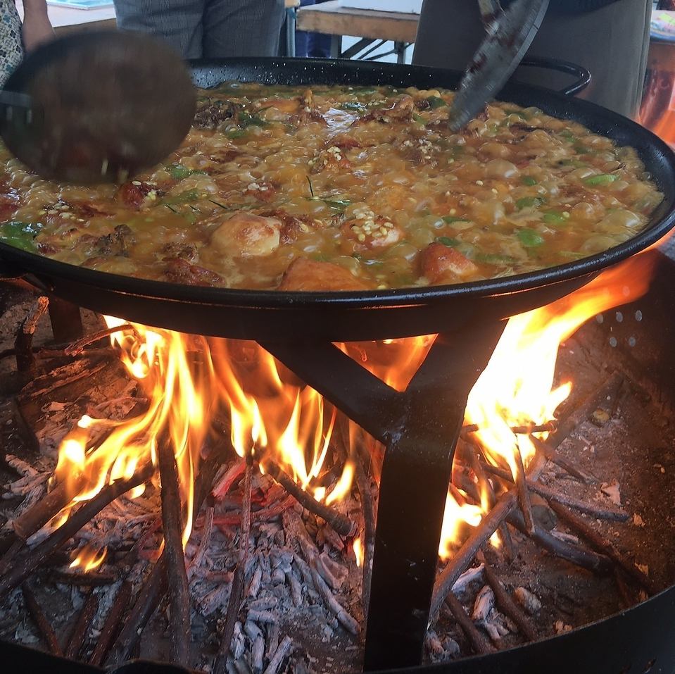 パエリア専門店が作る「薪火で焚くパエリア」パエリアの調理法の原点である薪火を使用して炊き上げます。